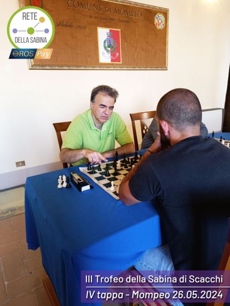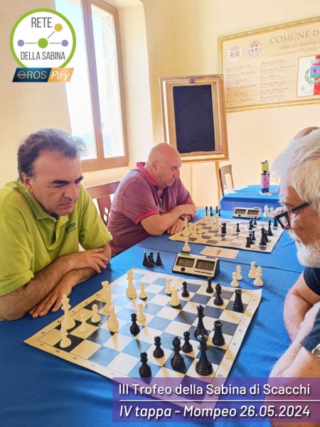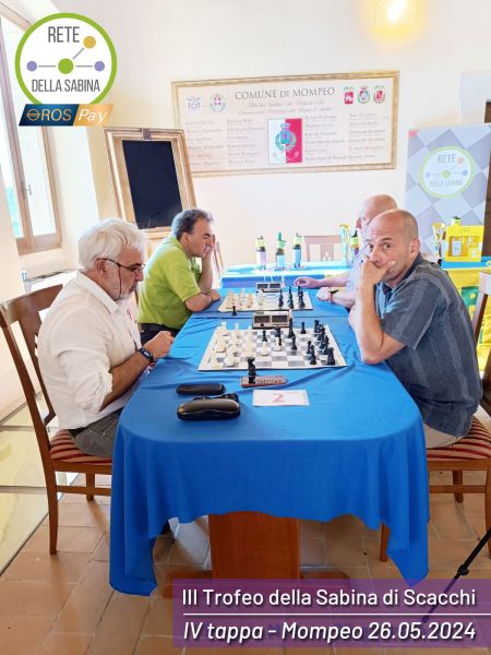 Si è svolta, domenica 26 maggio 2024, a Mompeo, presso le Sale del Castello Orsini Naro, la quarta tappa del 3° Trofeo della Sabina di Scacchi.