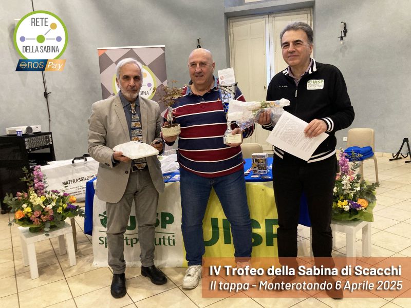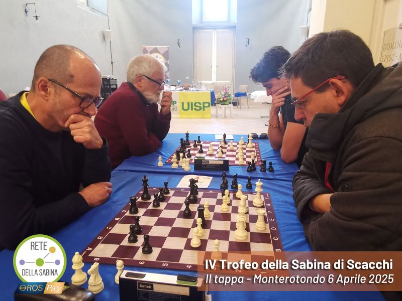 Domenica 6 Aprile 2025 a Monterotondo si è svolta presso il Centro Parrocchiale di Via Ricciotti Garibaldi, 22 la seconda tappa del 4° Trofeo della Sabina di Scacchi.