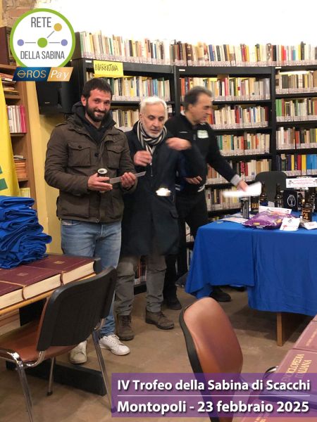 Domenica 23 febbraio 2025 a Montopoli si è svolta presso la Biblioteca "Angelo Vassallo", la prima tappa del 4° Trofeo della Sabina di Scacchi.