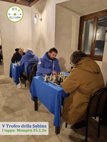 Domenica 25 Gennaio 2026 a Mompeo ha avuto luogo presso le sale del Castello Orsini Naro la prima tappa del 5° Trofeo della Sabina di Scacchi.
